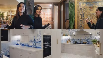 The home, which she shares with her husband Anand Ahuja and their son Vayu, features intricately hand-painted walls and traditional Indian elements, blending contemporary and vintage aesthetics seamlessly. Kapoor‘s home stands as a testament to her love for art and design.