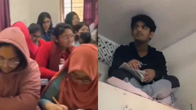 The video that is going viral right now shows that many children are sitting and studying in a coaching class. The number of children there is so much that there are no seats left for anyone else. The teacher is teaching them. Then the person recording the video focuses on a child, seeing whom you will start laughing. That child is sitting and studying in the store room inside the room or in the space left above the bathroom. This is the reason why the video is going viral on social media.