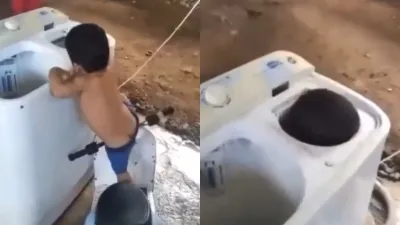 A child used a washing machine in such a way that you will start worrying about the child. His video is going viral on social media and people have also commented after watching it.